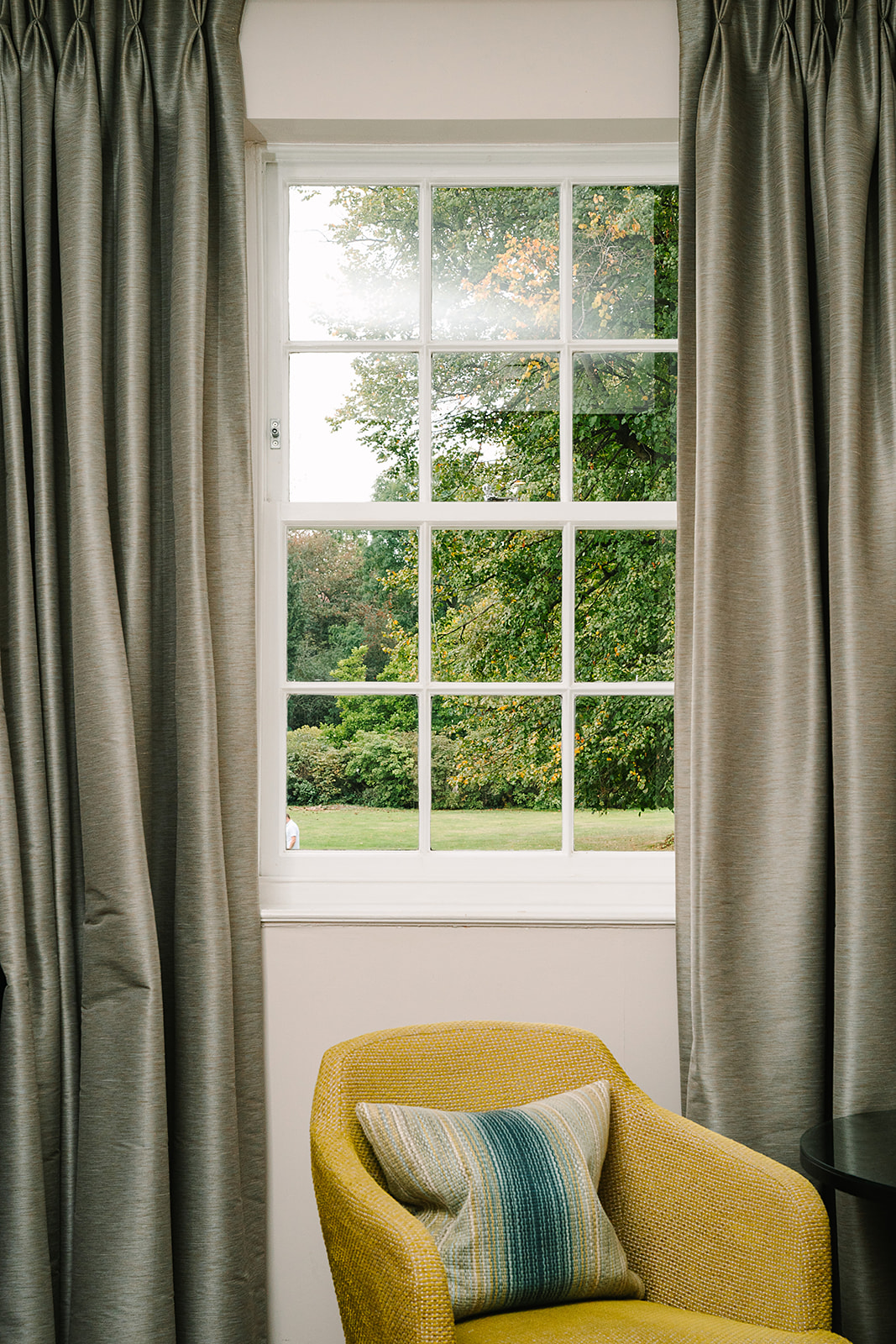 Just made for gazing over the gardens, this contemporary space is decorated in fresh greens and yellows with crisp modern finishes.