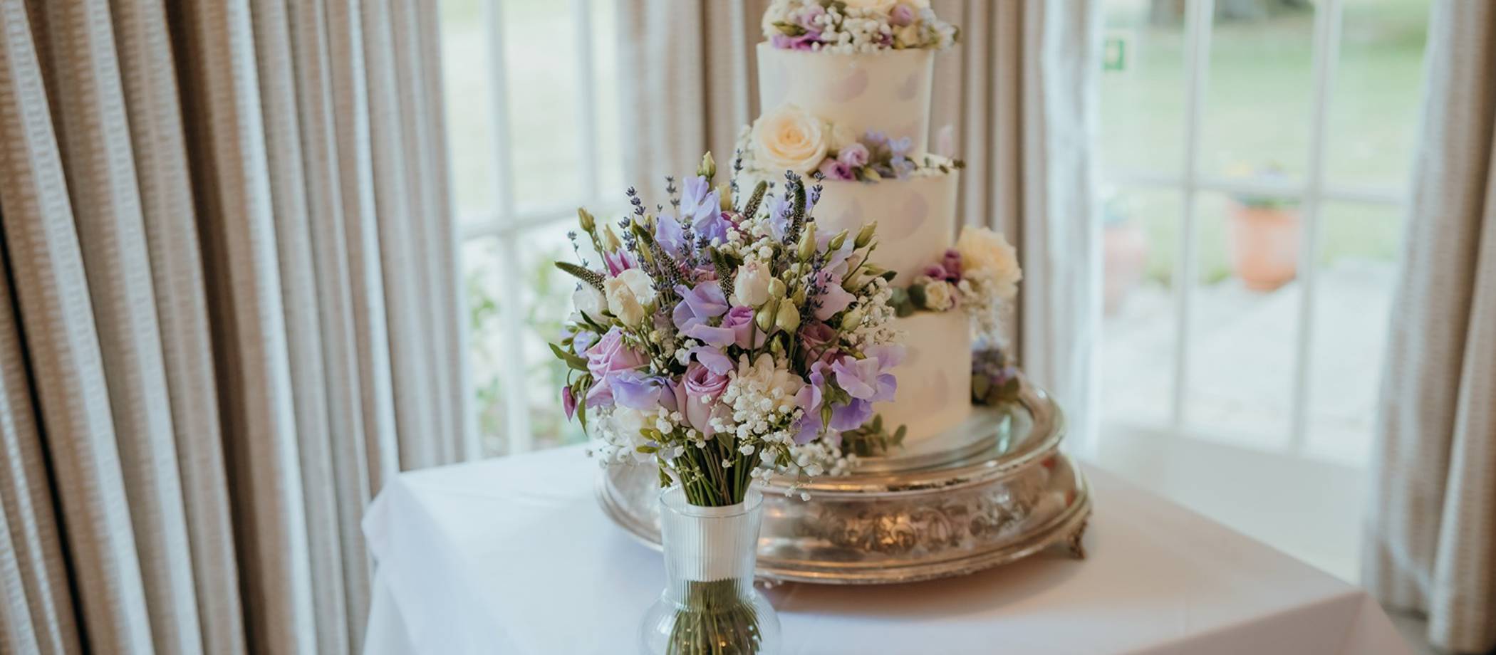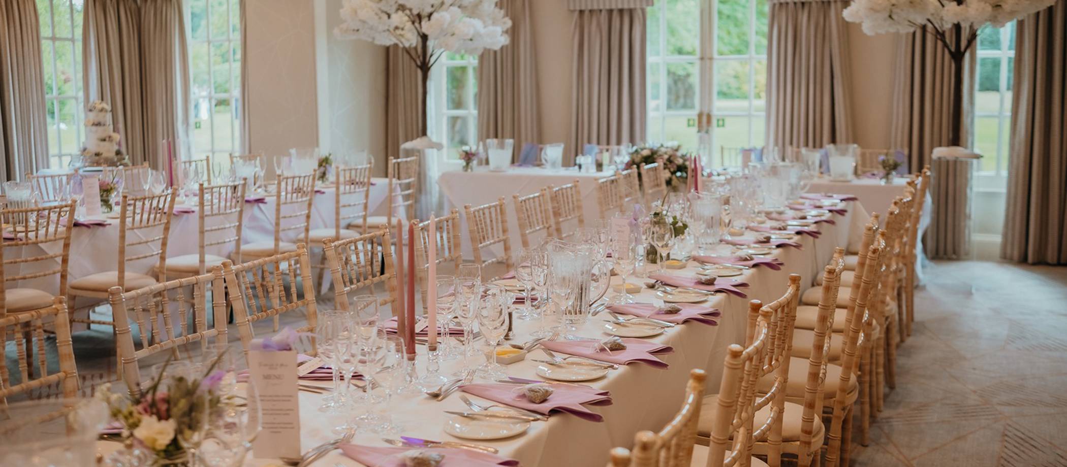 Our colour palette was a pastel lilac colour and we styled the day accordingly – chair sashes, napkins, candles, cake, flowers, bridesmaid dresses and suit accessories. This really helped tie it all in together.